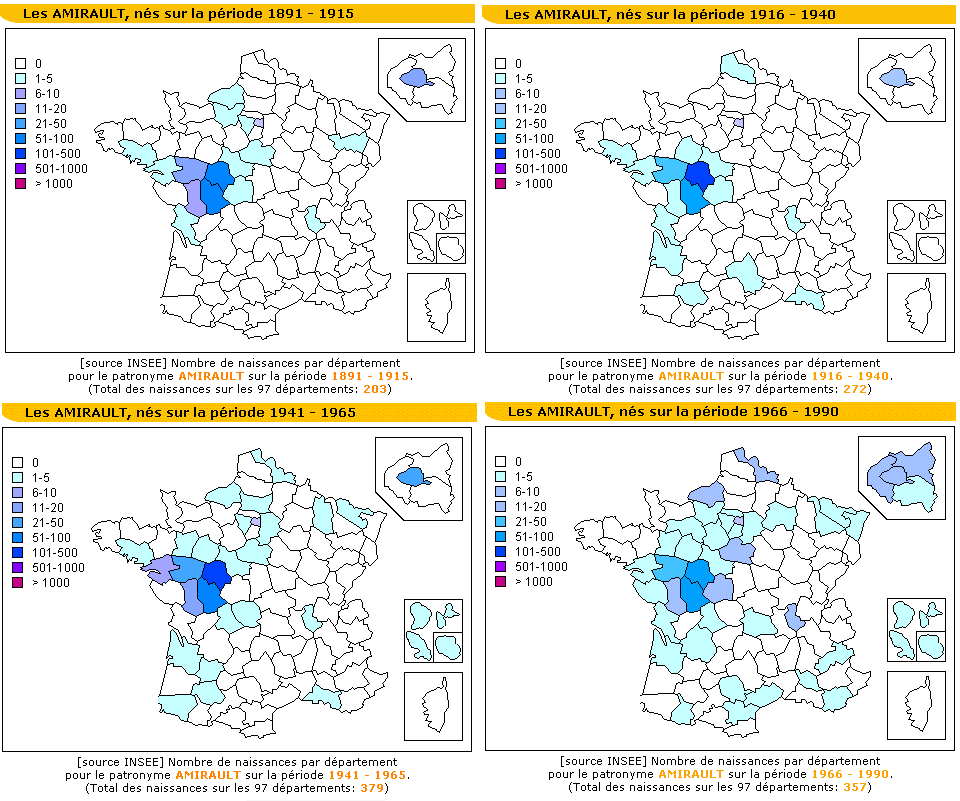 Amirault Births in France From 1890 -1990