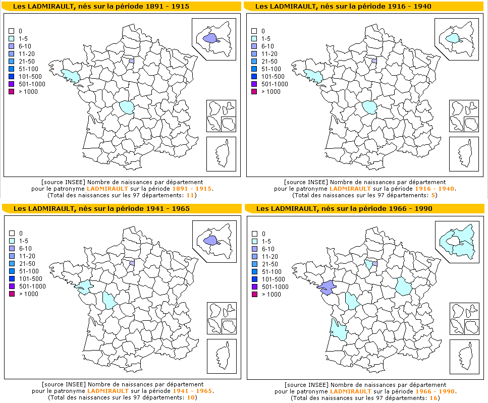 Nombre de naissances Ladmirault en France de 1890 à 1990