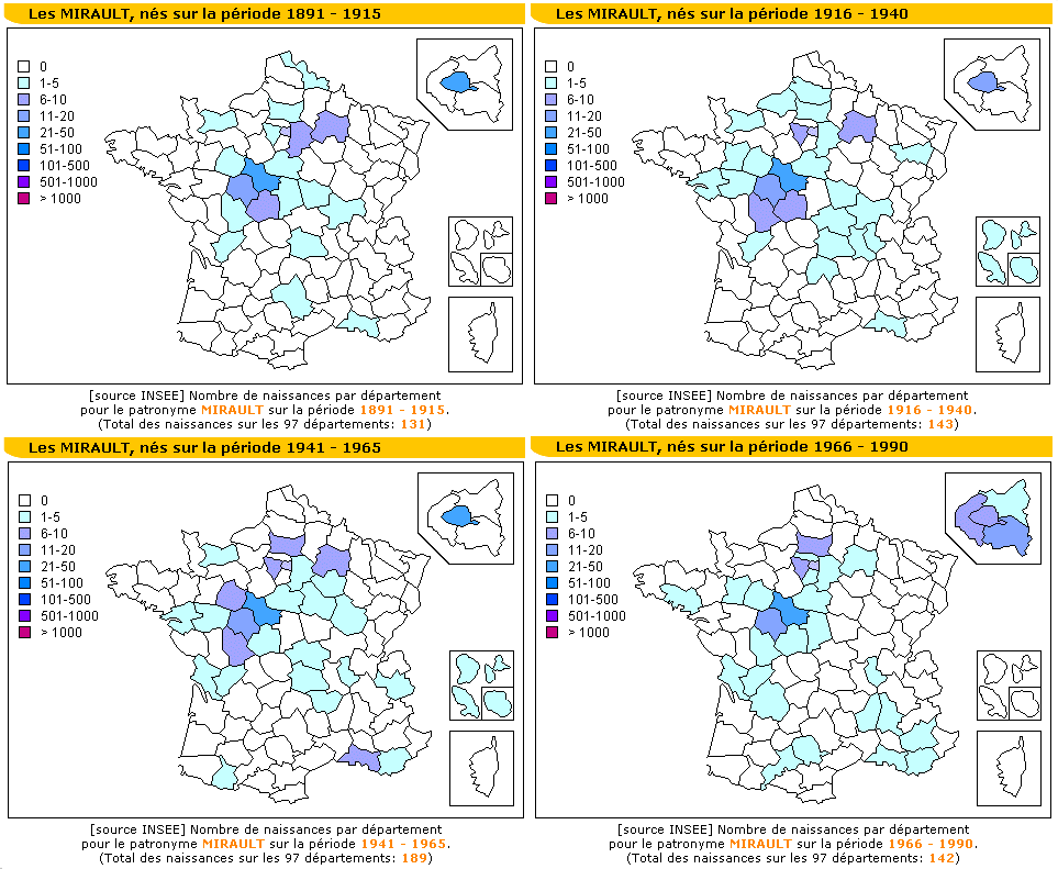 Mirault Births in France From 1890 -1990
